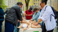 Emergencies can happen anywhere—being prepared can make all the difference. The Community Development-Resuscitation Education, AED, and CPR Training (CD-REACT) is an innovative, research-backed, community-driven initiative equipping residents of Washington Heights, Inwood, and the South Bronx with essential life-saving emergency response skills. Through comprehensive, hands-on training in CPR, automatic external defibrillator (AED) use, Narcan administration, Stop the Bleed techniques, and safety and injury prevention from bicycle and car accidents and drowning, the program ensures that more people are prepared to respond effectively in life-threatening situations.