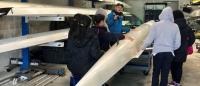 On Monday, November 26, the Office of Government & Community Affairs and Columbia Athletics, hosted the Learn to Row event at Columbia's boathouses in Inwood. The event is designed to provide local middle school students with an introduction to rowing. Participating students from PS-IS -18 toured the boathouses and the equipment with Columbia rowing coaches and gained hands-on experience using the rowing machines. Representatives from Row New York, an organization that runs programs for the community, also attended and shared information about its year-round programs for youth.